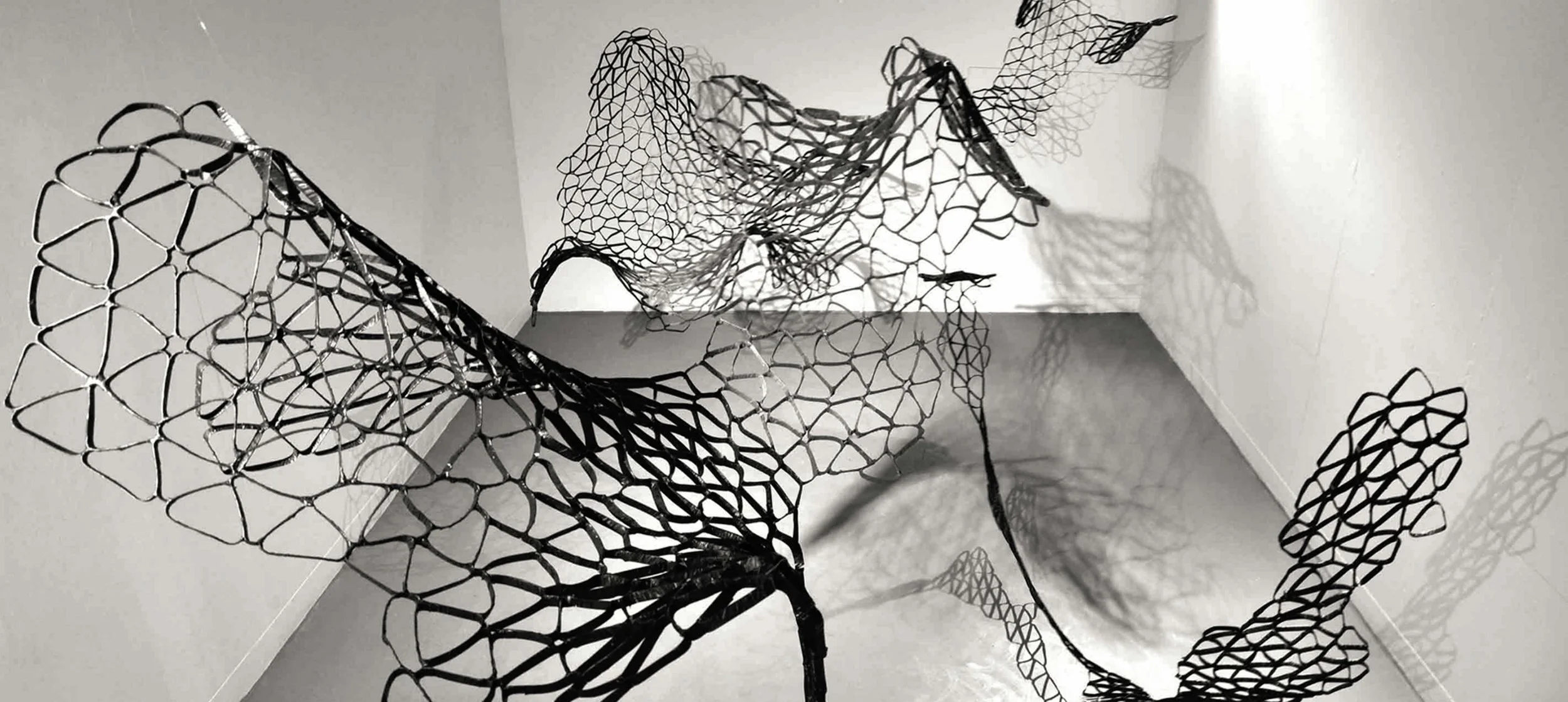 Pupa was created as an alternate way of drawing, expanding lines relationship to surface, form and space. Utilising re-contextualised material beyond the traditional two dimensional surface plane, investigating line extension.